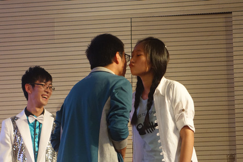用嘴传吸管的游戏也受到热烈的欢迎,两队选手摩拳擦掌,互不相让。为了能更好地传递吸管,选手们用力地将嘴嘟起,酷似亲吻的表情引来场下一阵阵的笑声。而在这欢声中也拉开了第三章的序幕。