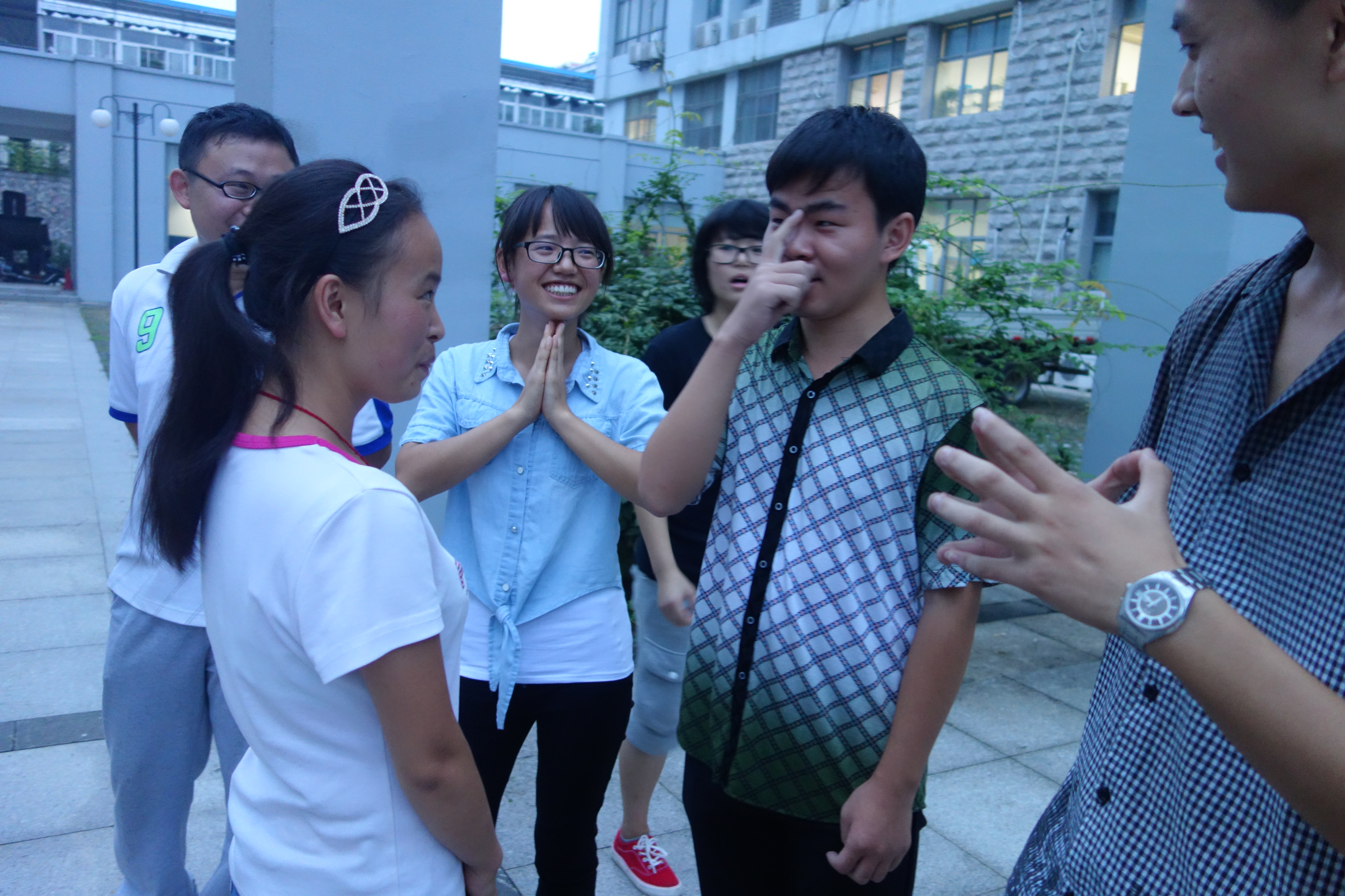 刚刚报道的14级新生们也迎来了和老师同学的第一次见面。为了帮助新生们更好地了解同学,加深彼此间的友谊和集体归属感。学院还特别邀请了学校心协的老师和同学带领大家一起做游戏。