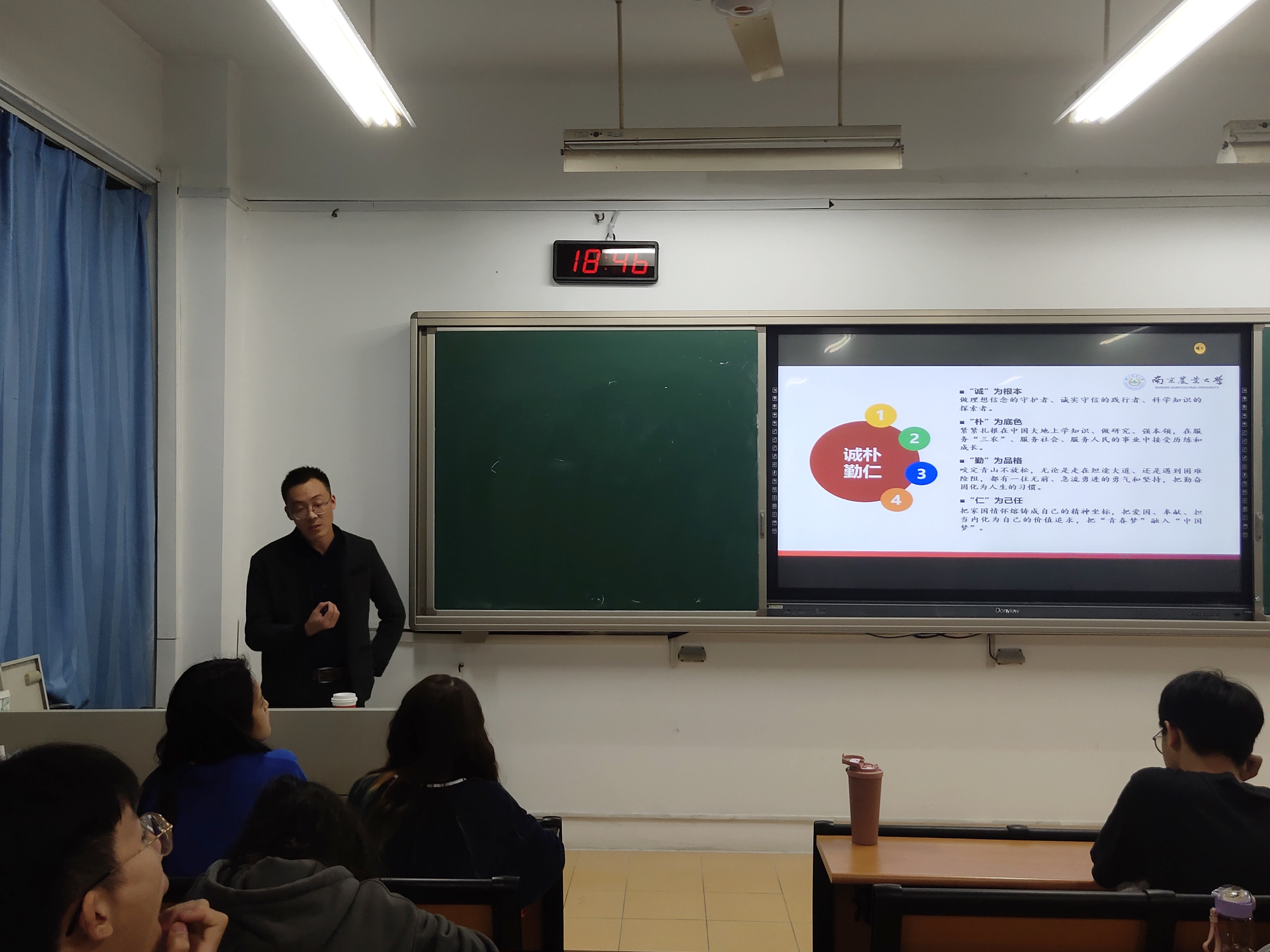 最后,文书记连续以金善宝、李鸿渐、王酉亭、任继周、邹秉文、北大荒七君子等农业先辈的事迹,明确希望同学们牢记使命任务,正确理解南农”诚“为根本、”朴“为底色、”勤“为品格、”仁“为己任的校训。希望同学们”向上的青春,要向下扎根“,做一名合格的”新农人“。