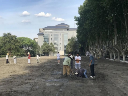 据杨志民教授介绍:目前自动喷灌系统安装、原有杂草清除工程已经完成,坪床建设工作正在进行中,预计于8月20日左右播种,一个月后新的草坪就会呈现在师生眼前。