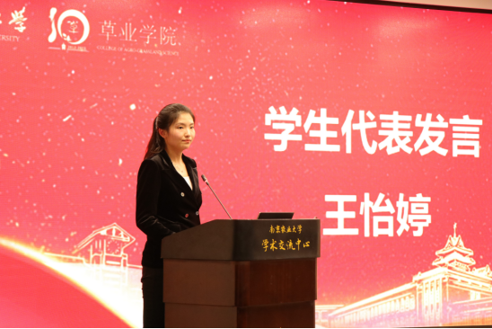 沈益新教授作为教师代表发言中回顾了梁祖铎教授等草业前辈工作中科学严谨的精神,手把手指导青年教师提升教学能力,对学生的既严又爱的认真负责精神,希望现在的青年教师要先做好老师,才能成为大先生。