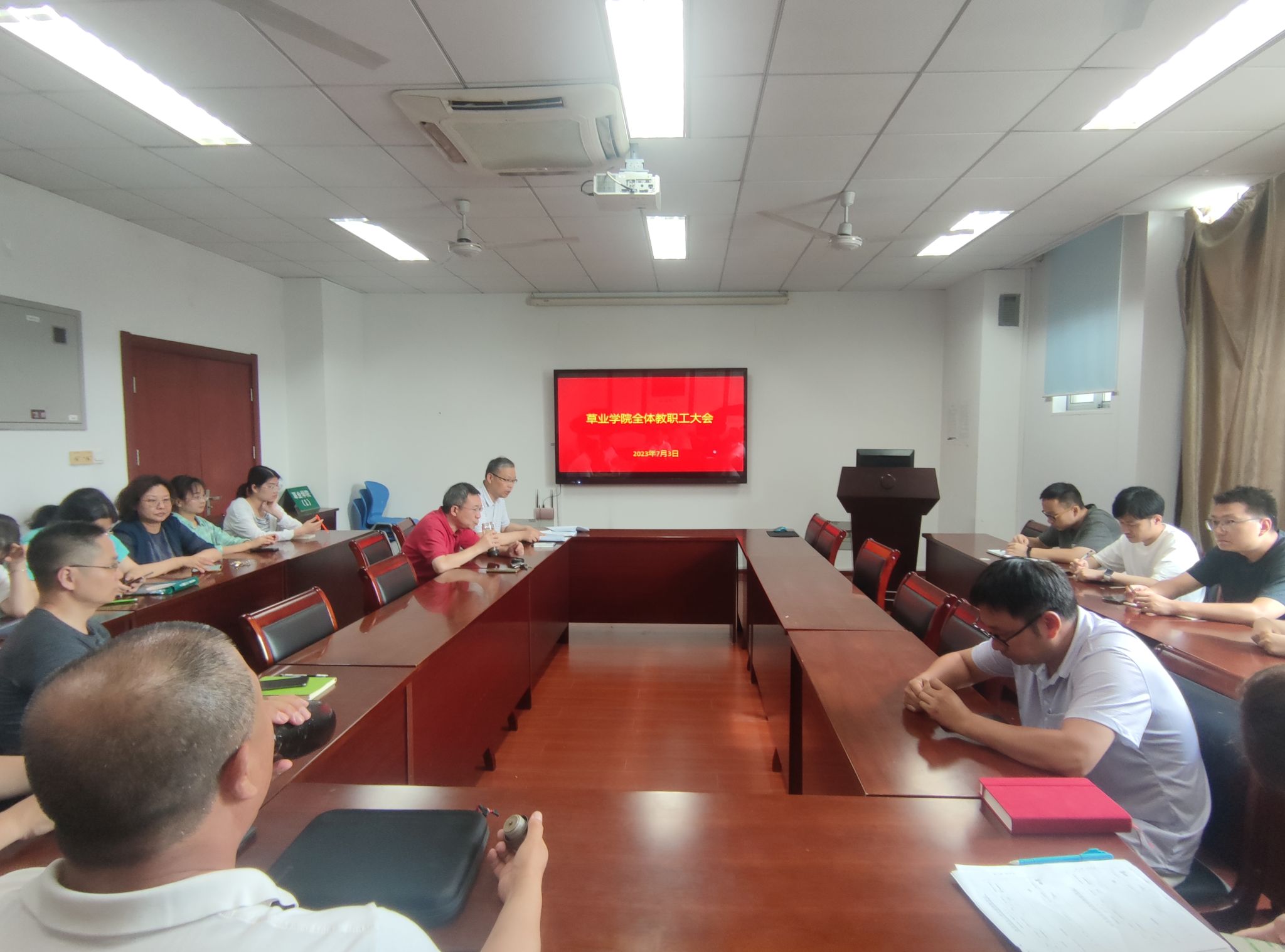 在院会议室召开草学学科建设工作推进会,学院领导郭振飞院长、陈煜副院长和全体教师参加了会议,会议由院党委书记李俊龙主持。