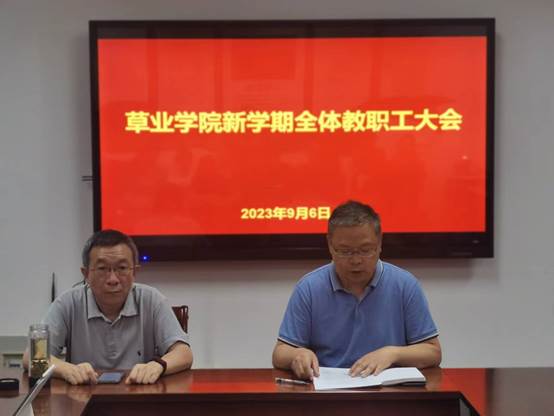 9月6日下午,学院召开新学期全院教职工大会,传达并学习学校新学期工作会议精神,部署学院新学期工作。会议由院党委书记李俊龙主持。