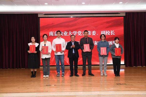 颁奖仪式上,单正丰为获奖师生颁发荣誉证书,南京农业大学校友总会办公室(教育基金会办公室)主任姚科艳宣读表彰决定,博彩论坛