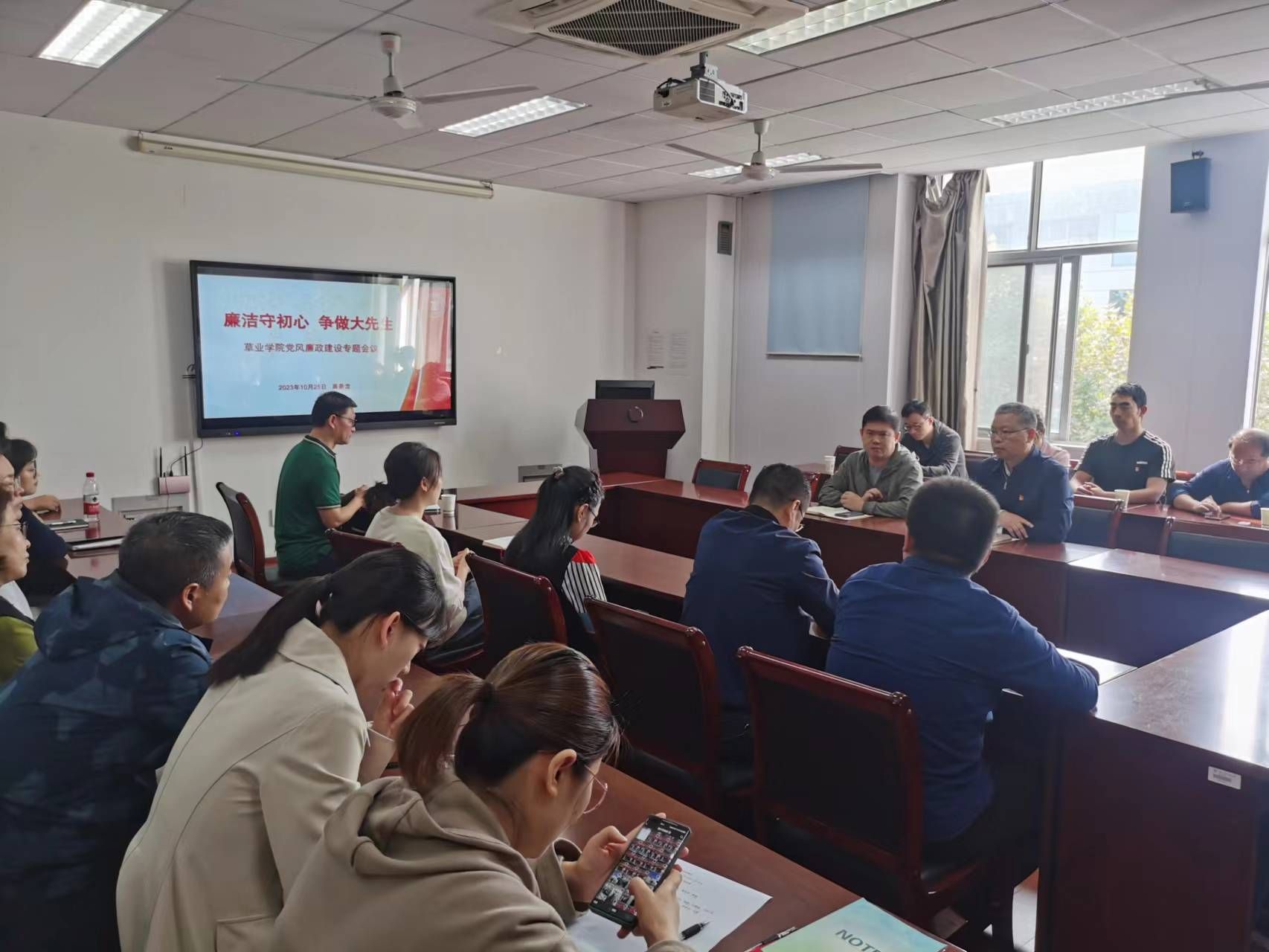 李俊龙总结时强调,学院高度重视党风廉政建设和反腐败工作,全院教职工要始终绷紧作风建设这根弦,坚持不懈抓教育、正风气、树新风,要严格落实中央八项规定精神和学校的各项规章制度,坚持把党的政治建设摆在首位,持之以恒推进全面从严治党、党风廉政建设工作,压实政治责任;全院教职工要强化理想信念,立德修身,加强纪律意识、责任意识,涵养高尚师德师风,严守法纪“底线”,争当学生的“引路人”和时代的“大先生”。