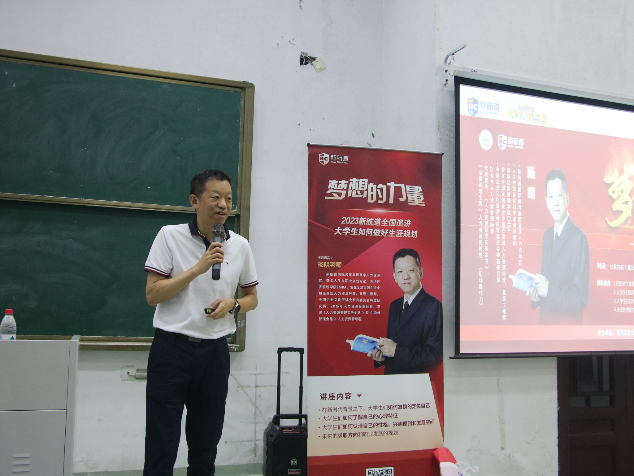 在卫岗校区主楼101教室举办了“梦想的力量——大学四年如何规划”专题报告会,报告会邀请新航道国际教育集团首席人力资源官杨明先生主讲,新航道南京学校负责人俞诚栋先生、外国语学院党委副书记韩立新、博彩论坛