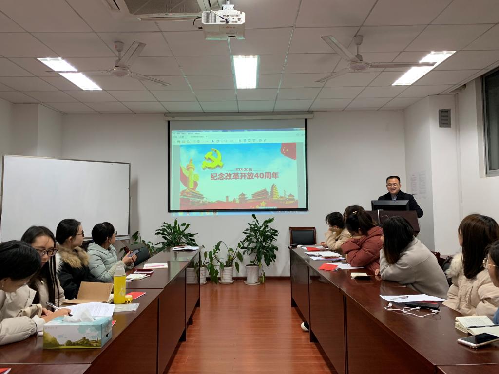 原现军同志以PPT的形式从改革开放的历史背景、改革开放的历程、改革开放40年重大成就、中国40年改革开放的基本经验和历史启发等六个方面,讲述了自1978年起在邓小平同志倡导下,以中共十一届三中全会为标志,中国开启的改革开放历史征程;从农村到城市,从试点到推广,从经济体制改革到全面深化改革,40年众志成城,40年砥砺奋进,40年春风化雨,中国人民用双手书写了国家和民族发展的壮丽史诗。