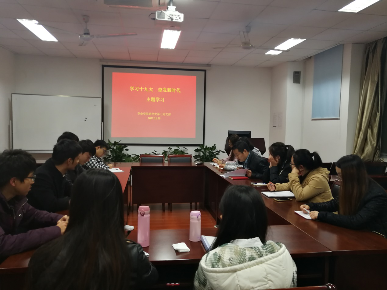 博彩论坛 第三党支部于2017年11月29日在F304学院会议室召开“学习十九大,奋发新时代”主题学习活动,会上支部书记刘君首先对支部成员提出了五大学习要求,使支部成员更加明确接下来的学习目标,有助于规划个人学习计划。