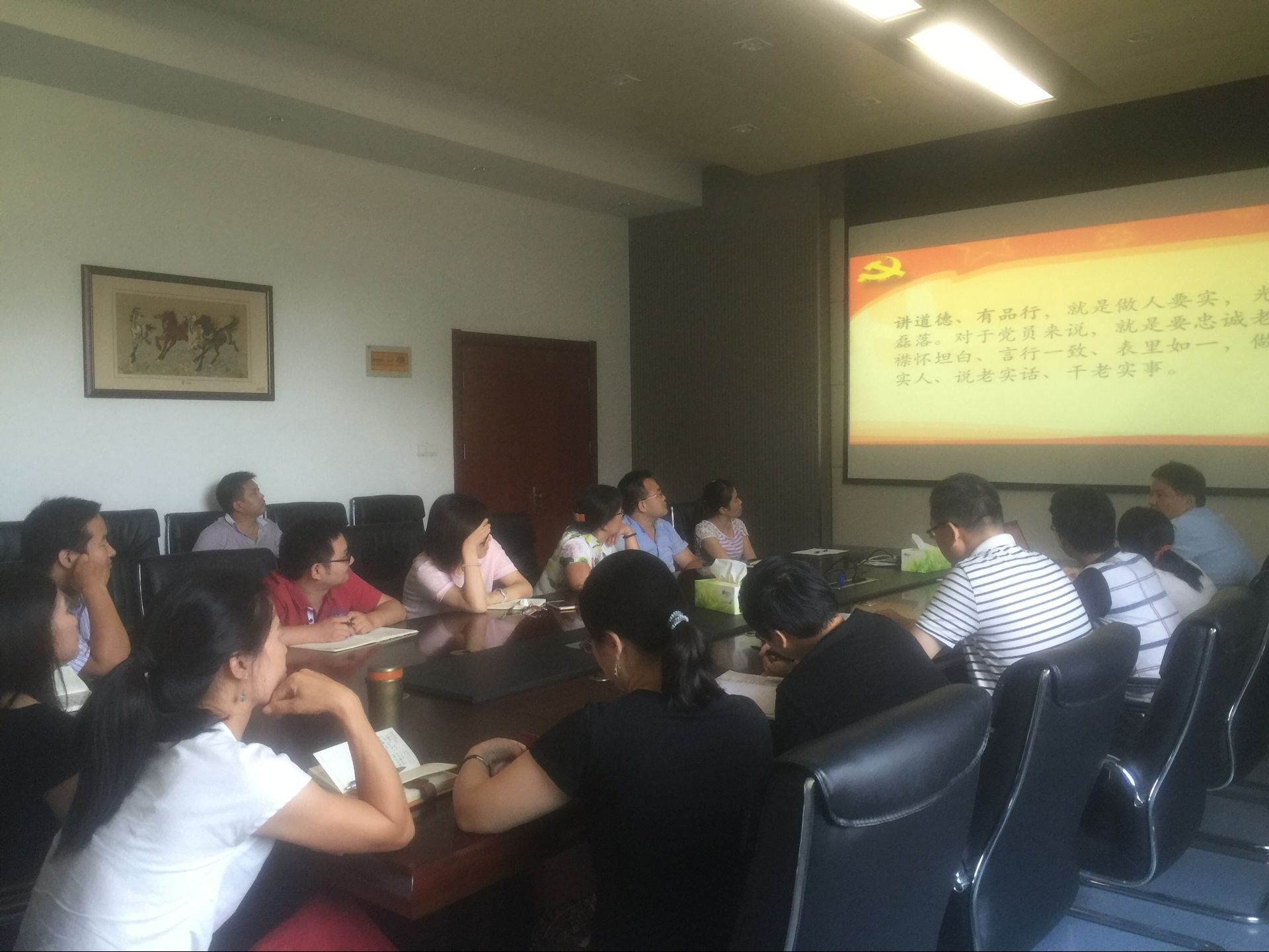 第三阶段教育主题是“讲道德、有品行”,重点学习《廉洁自律准则》、习近平总书记关于社会主义核心价值观和“好干部”、“ 四有好教师”等重要论述,强化道德修养和师德师风建设。邵涛首先带领大家集体学习相关文件,并回顾了如何做一名合格党员,即做到“四讲四有”, 强调要继续加强党员干部自身建设;接着深入介绍和阐述“立家规、传家训、树家风”对于我党反腐倡廉的重要意义。与会党员积极发言,共同讨论“家风”在我们每个小家庭中所起到的重要作用。