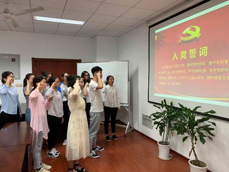 最后,毕馨颖、孙雨同志表明决心并面向党旗进行入党宣誓,全体党员同志也一同重温誓词。字字句句都饱含着党员同志们“不忘初心、牢记使命”的决心。