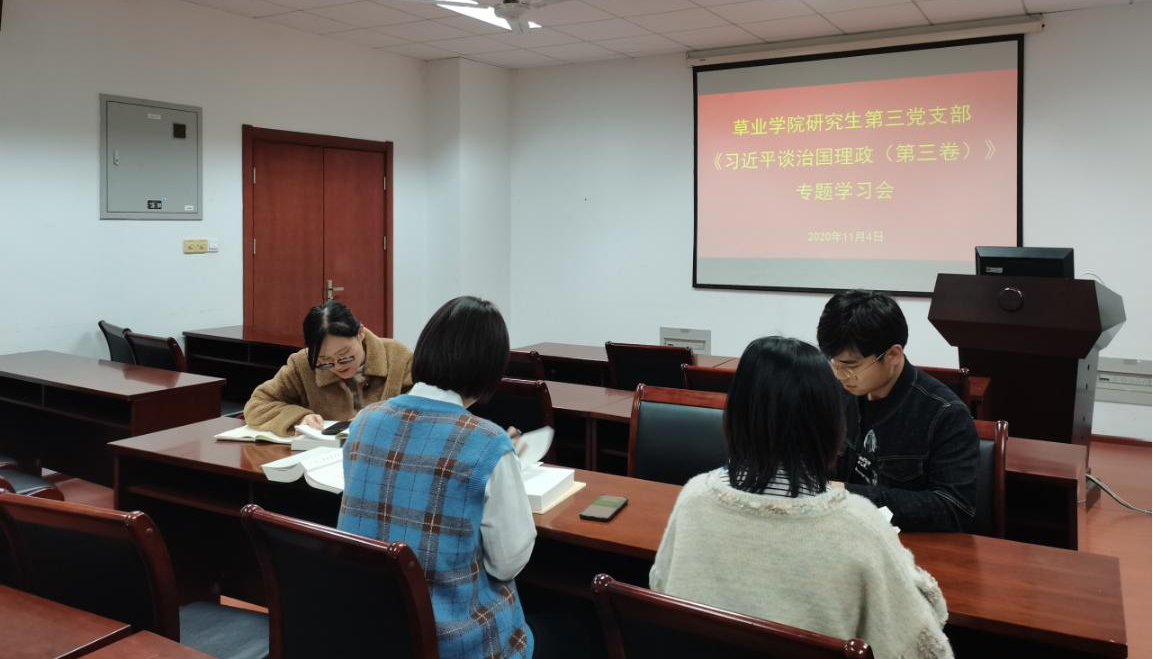 研究生第三党支部召开了2020-2021上半学年第三次专题学习会,会议主要结合《习近平谈治国理政》第三卷第三章,对《中国制度面对面》进行解读学习。会议由支部书记赵娜主持,开展采取线上线下相结合的方式,校外实践的党支部成员通过腾讯会议线上参与,线下书记同在校党员同志共同于理科南楼F304会议室参加会议。