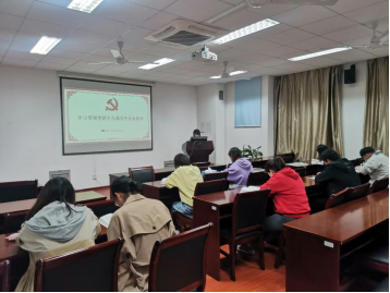 羿明璇同志带领大家重点学习了关于习近平总书记就《中共中央关于制定国民经济和社会发展第十四个五年规划和二〇三五年远景目标的建议》的重要讲话,围绕我国进入新发展阶段的重大意义、有利条件和重要特征,2035年远景目标和“十四五”我国发展的指导方针、主要目标、重点任务,构建新发展格局的战略构想和重要着力点,坚持党的全面领导、动员各方面力量为实现“十四五”规划和2035年远景目标而团结奋斗等四个方面,对党的十九届五中全会精神进行了解读。作为研究生的我们要能够全面深入学习贯彻党的十九届五中全会精神,通过持续性的学习来坚定自己理想信念。党的十九届五中全会是站在“两个一百年”奋斗目标的历史交汇点上召开的一次重要会议,为全面建设社会主义现代化国家把方向、定目标、绘蓝图、指路径,彰显了一以贯之的人民立场,体现了高远务实的发展战略,凝聚了治国理政的中国智慧,为第二个百年奋斗新征程开好局、起好步提供了根本遵循。
