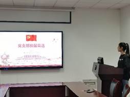 经向上级党组织呈报党支部委员换届请示以及前期党支部委员讨论酝酿,确定党支部副书记候选人为吴佳璇,另外两名支委委员候选人分别为杨乾、董瀛潞和郑钰莹。在党支部书记赵娜的带领下,竞选人依次完成竞选演讲。