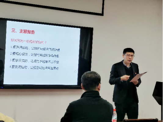 整场培训中,庄老师多次以亲身经历生动形象地传授经验,使精心提炼的词汇富有生命:致辞讲话中“有新意,有感情,有创新,有互动”是必备要素;一份精彩的报告需要善用排比,精心设计,联系实际,善用短句;简练清晰是新闻稿的关键。