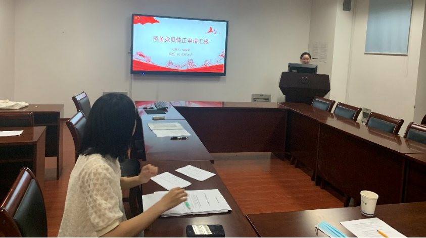 按照党组织接收党员的程序:首先,预备党员杨笑笑同志从对党的认识,入党动机,历史背景,个人经历以及在校表现几个方面向大会作了简短汇报。与此同时,杨笑笑同志也诚恳地回答了与会党员提出的问题。