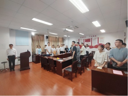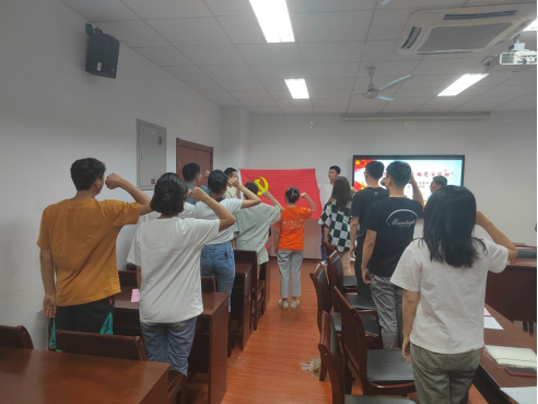 第四部分,在院党总支副书记、副院长高务龙的带领下,两位新发展党员进行入党宣誓,全体举起右手庄重严肃地重温入党誓词,追忆入党初心,牢记使命担当。