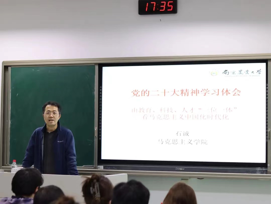 举行了党的二十大精神学习培训会议,此次培训邀请了南京农业大学马克思主义学院的石诚副教授主讲,会议由博彩论坛