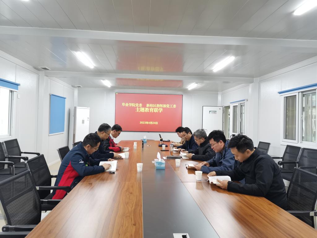 424日下午,博彩论坛 党委、新校区建设指挥部党工委在江北新校区开展主题教育读书班联学活动。博彩论坛 党委书记李俊龙,新校区建设指挥部常务副总指挥夏镇波,新校区建设指挥部党工委书记、教师公寓指挥部常务副总指挥倪浩,以及两单位其他班子成员参加。