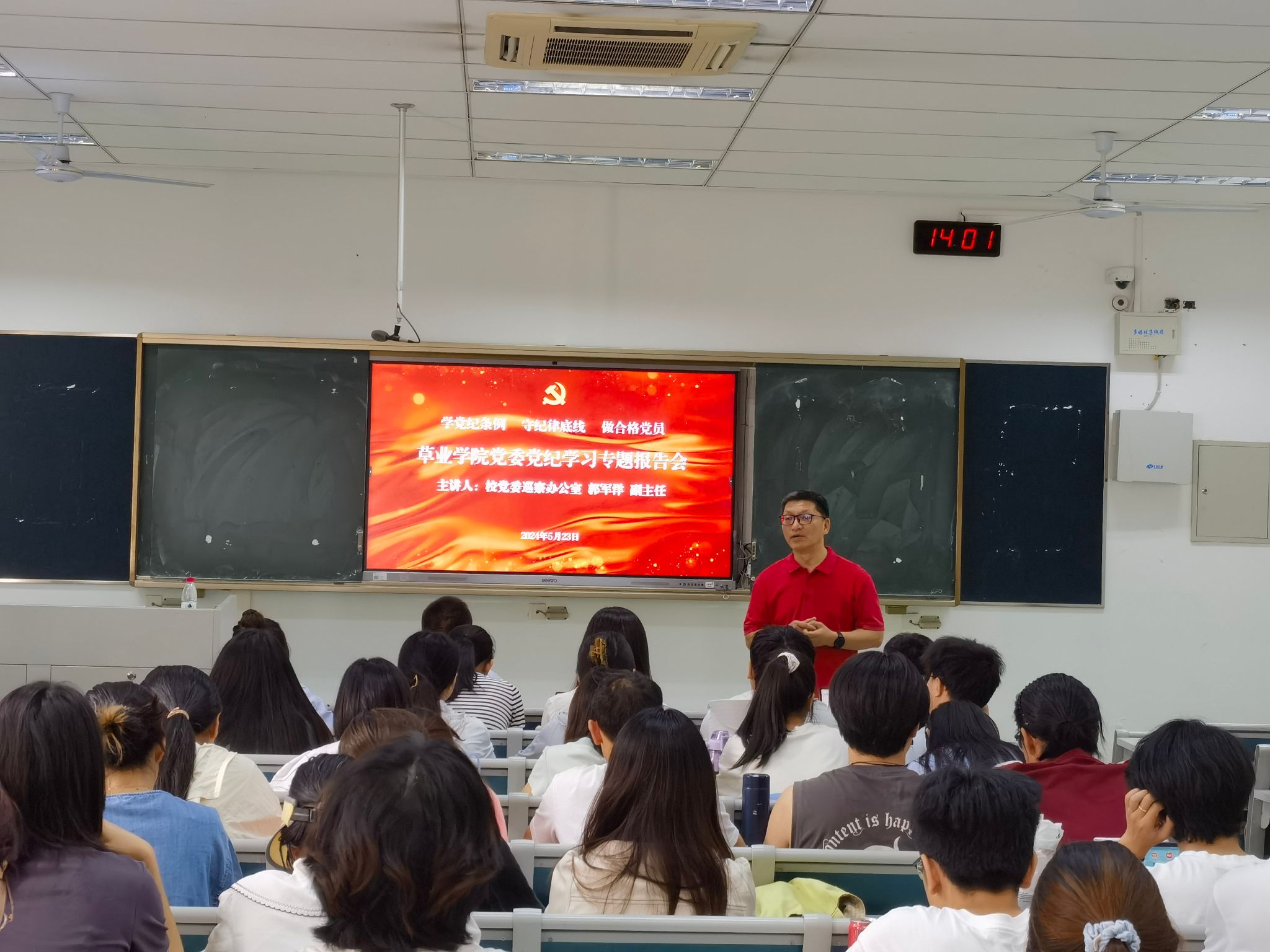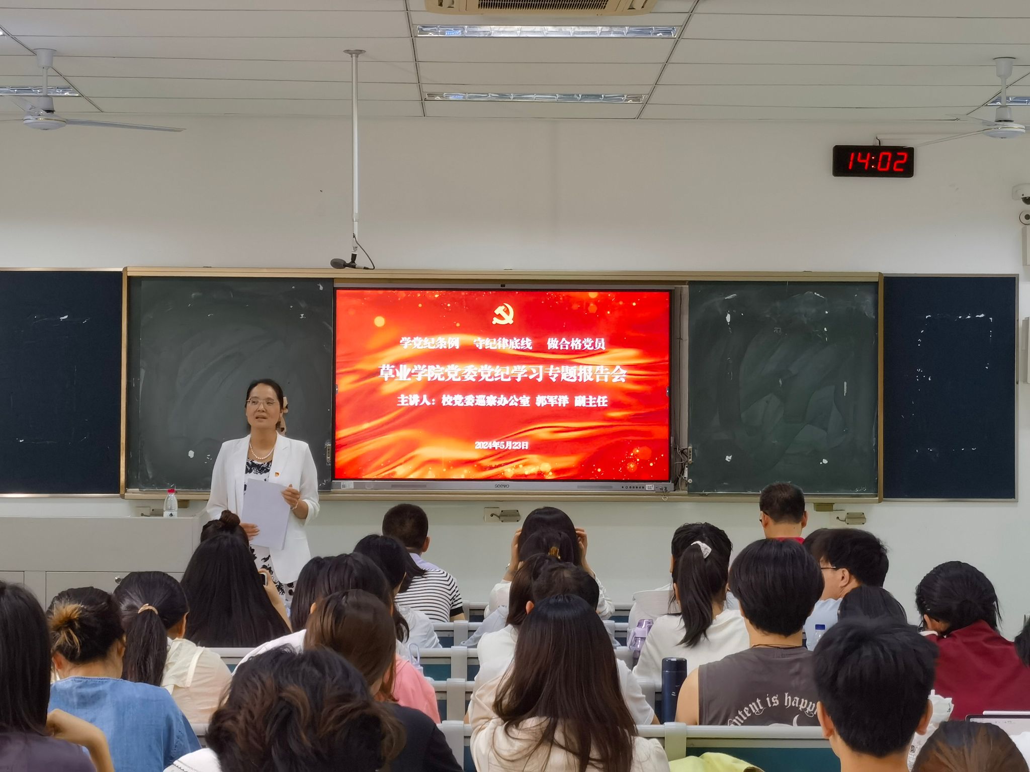 2024522日下午,博彩论坛 党委邀请校党委巡察办公室郭军洋副主任在主楼205举办了党纪学习教育专题报告会,博彩论坛 全体师生党员和部分入党积极分子参加了此次学习。