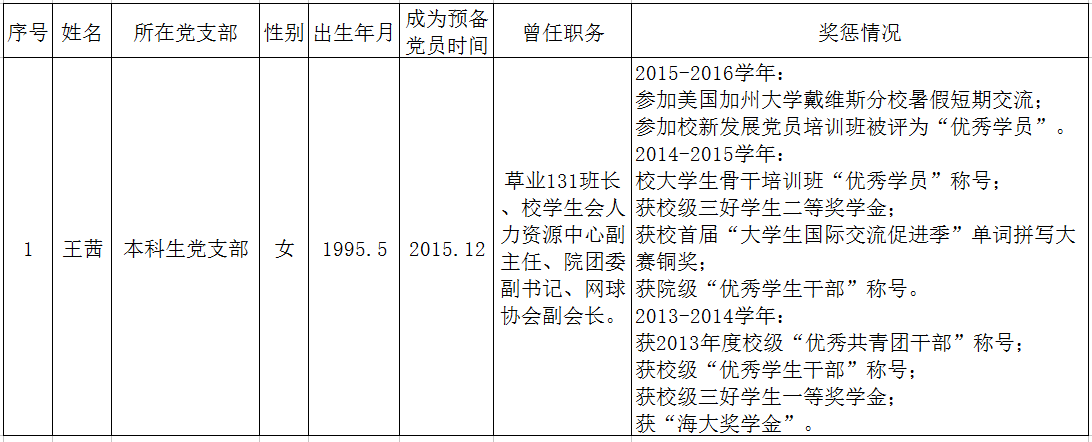 根据博彩论坛 党员发展工作安排,经转正答辩,党支部讨论,结合个人成绩、综合测评以及获奖任职等综合表现,经院党委讨论审核,拟对本科生1名中共预备党员进行转正,具体名单如下:
