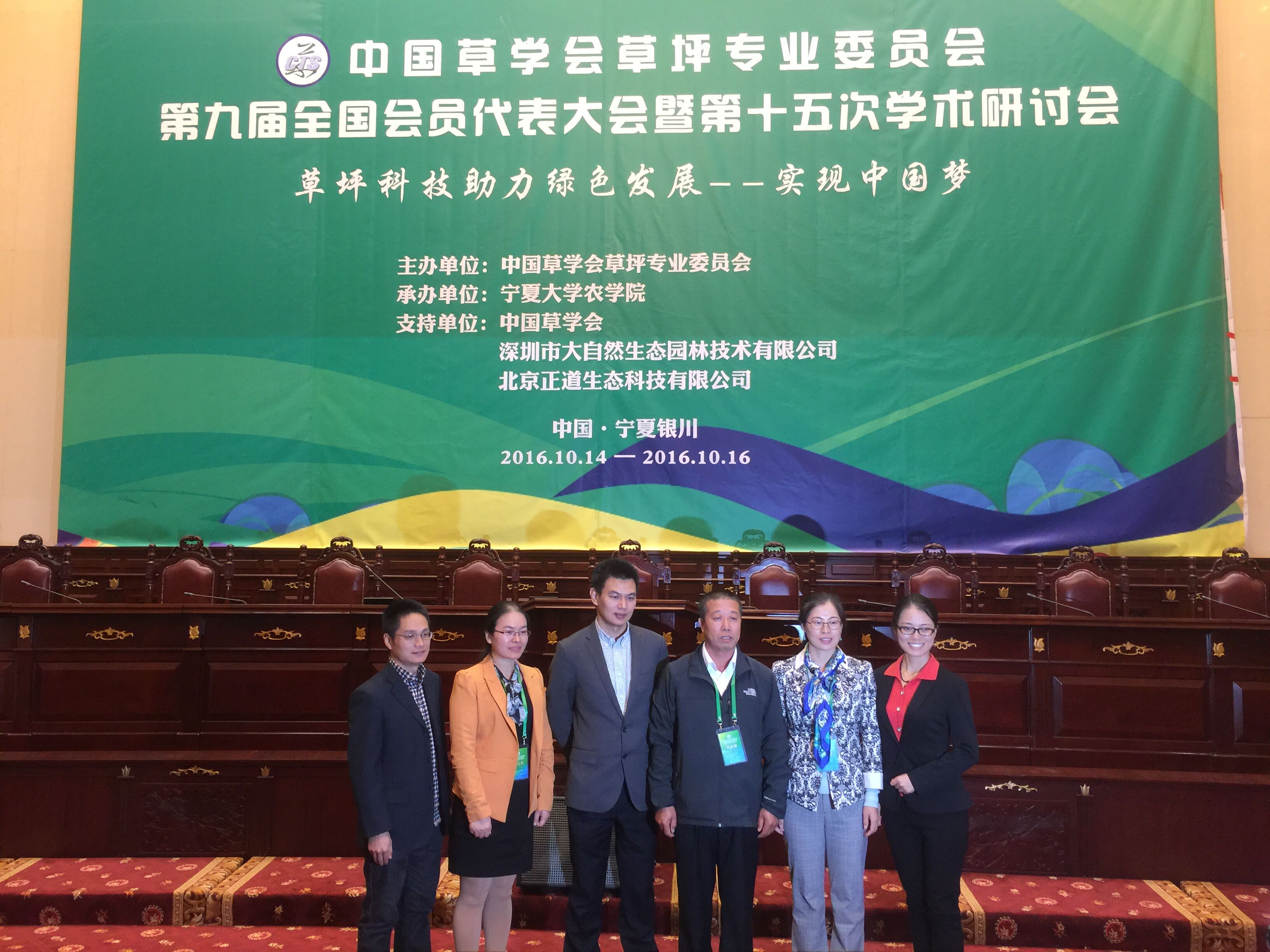 2016年10月15日,博彩论坛 草坪学教学科研团队教授杨志民,副教授徐彬、于景金,讲师陈煜、庄黎丽,博士后徐倩老师,参加了在宁夏银川市举行的“中国草学会草坪专业委员会第九届全国会员代表大会暨第十五次学术研讨会”,杨志民、徐彬、于景金、庄黎丽、徐倩老师分别做大会学术报告。此次会议由中国草学会草坪专业委员会主办,宁夏大学农学院承办。会议还进行了新一届理事会选举,博彩论坛 郭振飞、杨志民教授当选中国草学会草坪专业委员会常务理事,徐彬副教授当选理事和副秘书长。