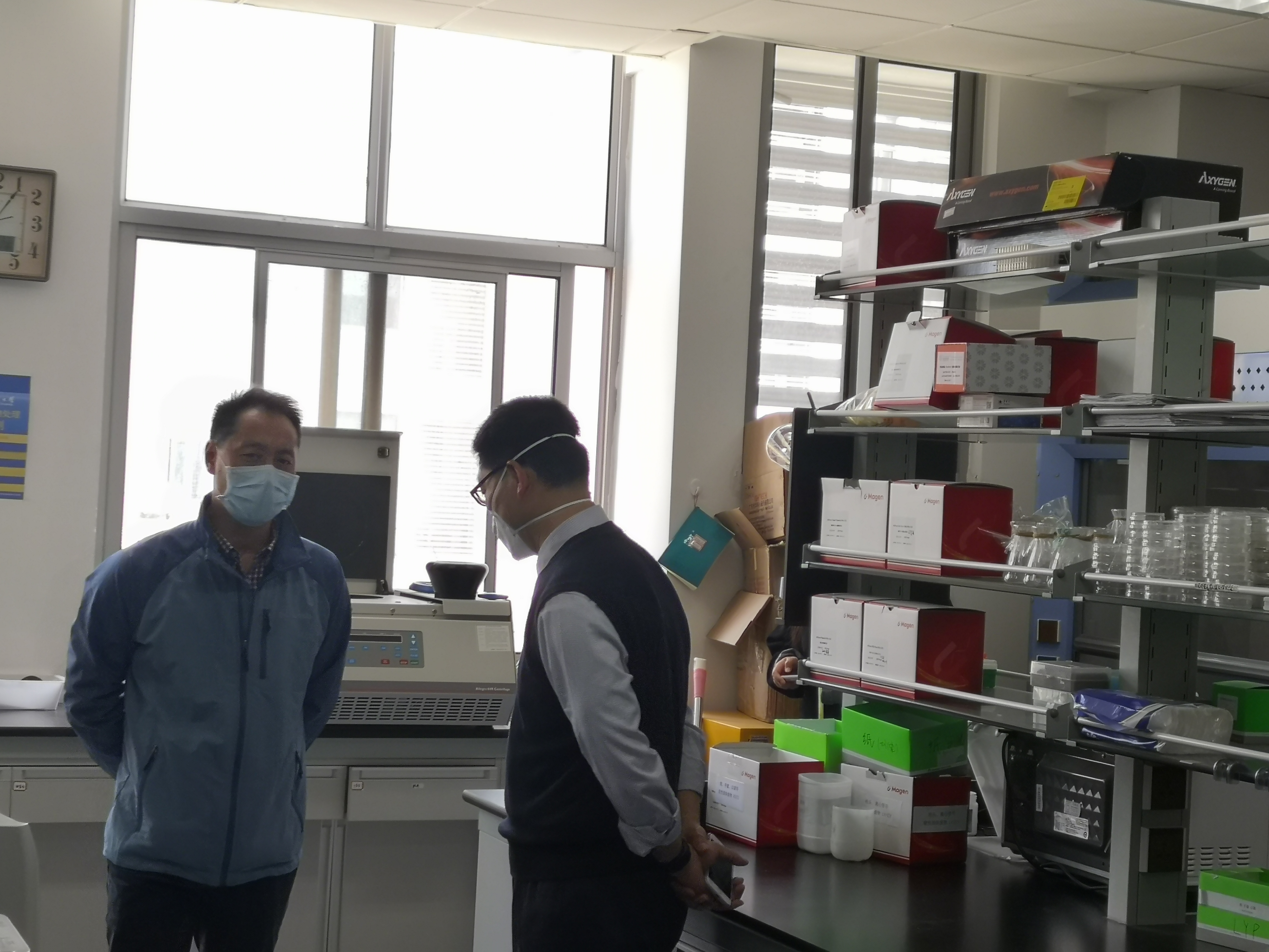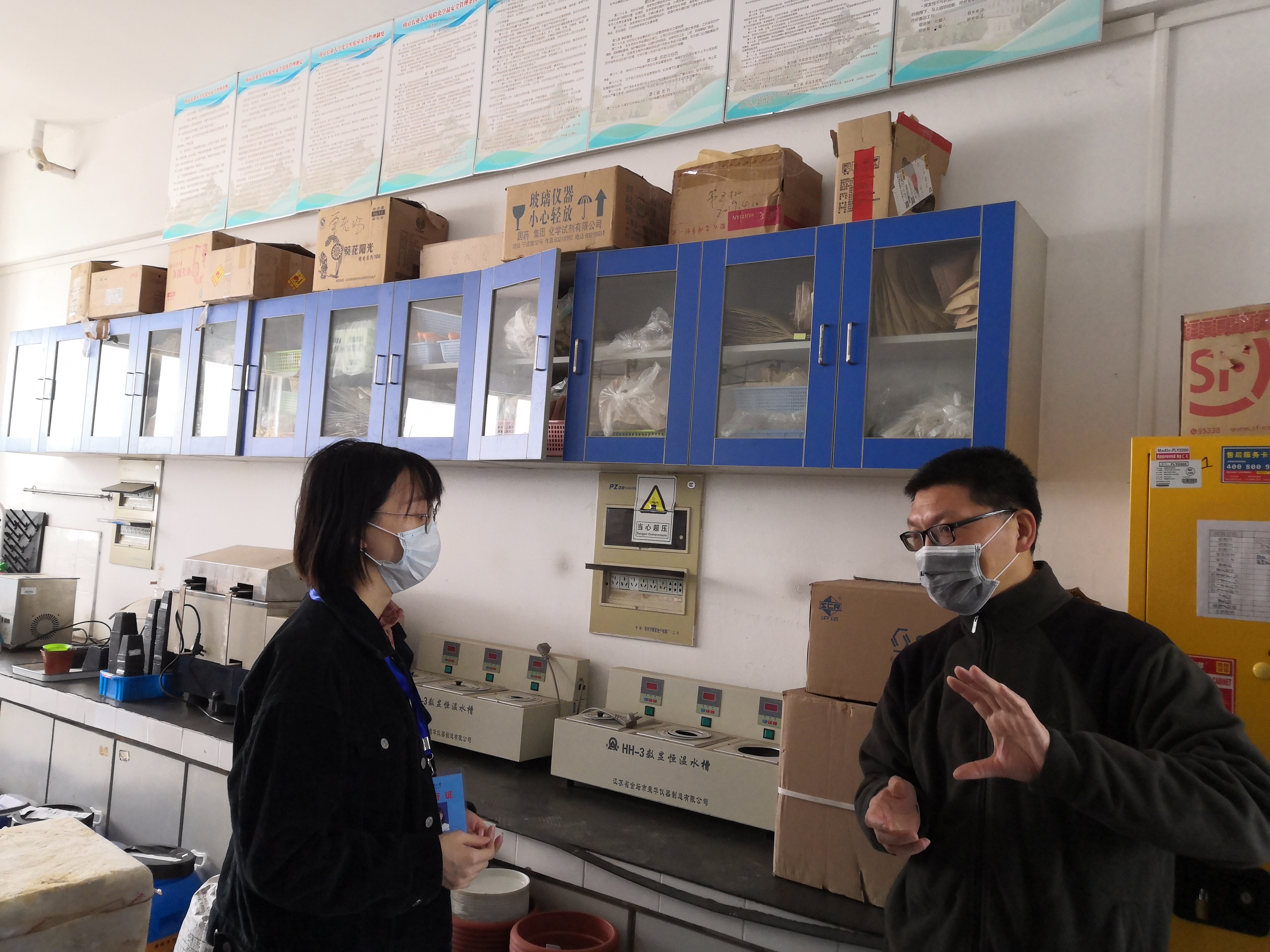 检查工作,党总支副书记兼副院长高务龙陪同检查,并向检查组介绍了学院的实验室疫情防控方案,包括:责任落实、物资准备、人员准入、应急处理、安全教育等。