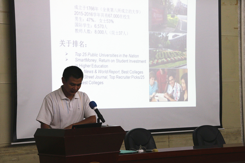 大会进行第一项,播放视频。已经赴美留学的博彩论坛 学生在大洋彼岸发出邀请,诚挚欢迎更多的朋友加入他们的队伍。同时,留学生结合自身经历,对罗格斯大学校园学习生活,周边环境做了详细介绍。接下来,徐彬副院长针对博彩论坛 留学情况,教学模式等展开讲解,答疑解惑。随后,于景金老师结合自身留学经历讲述了罗格斯大学的风土人情,并针对现实生活中可能会遇到的各种问题一一解答,解决了在座各位家长对该所大学的疑惑。