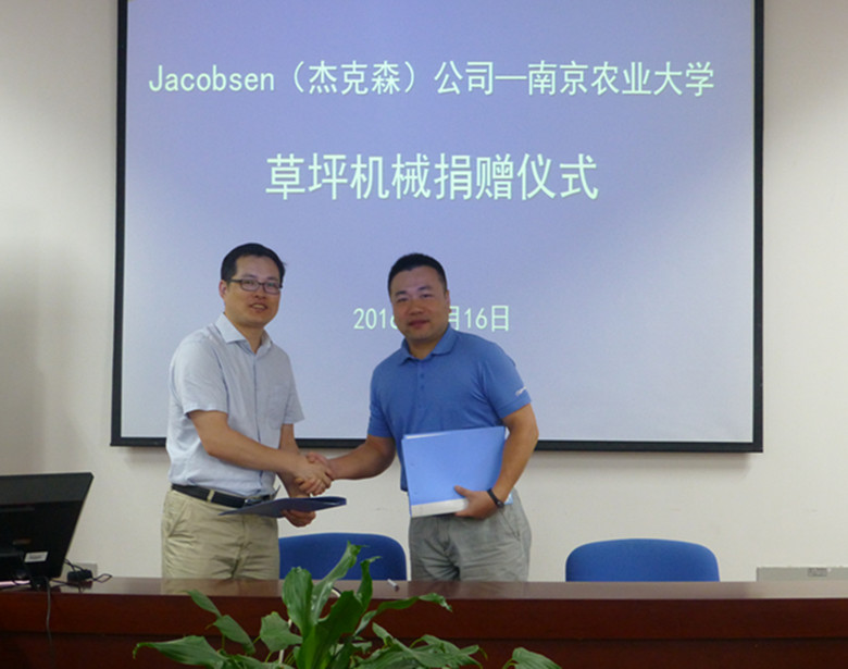 2016年6月16日上午,美国Jacobsen(杰克森)公司-南京农业大学捐赠草坪机械仪式在博彩论坛 会议室举行。