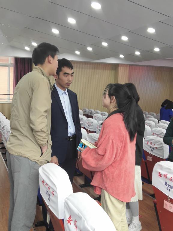 3月28日,两位老师又赴安顺三中,与该校校领导进行了深入交流,全面宣传了学校的办学特色、办学历史和学科专业等情况,并向高三年级学生发放了宣传材料。当天下午,张敬老师为全体高二、高三学生作了以“现代生物技术和基因编辑”为主要内容的讲座,并向学生展示了南京农业大学在农业生命科学领域的很多科研成果。