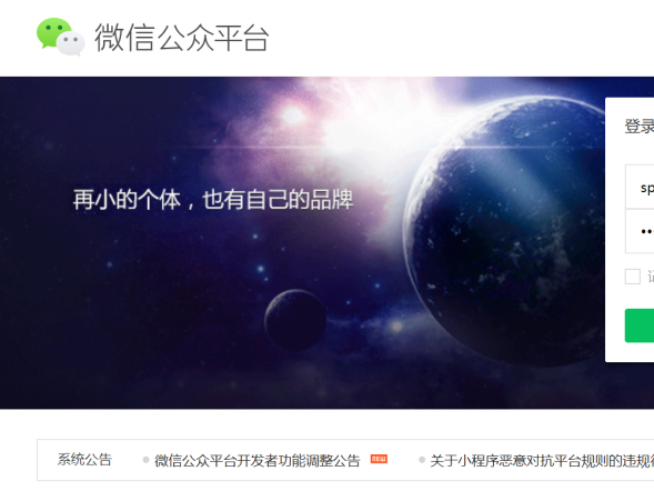进入微信公众平台官网的登录页面,输入账号和密码。