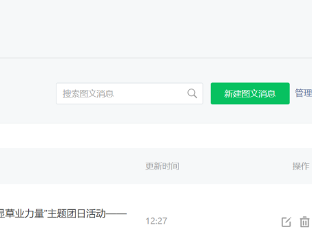 点击右侧的绿色按钮,“新建图文消息”,即可进入编辑界面。