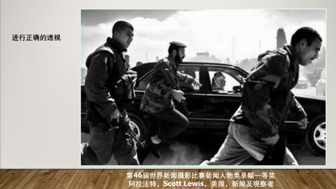 新闻摄影在构图时,应遵循以下原则。第一,要有鲜明的主题,明确的视觉印象。第二,要能把观众的注意力引向被摄主体。最后,画面结构应该简洁明了,协调统一,具有生动性。