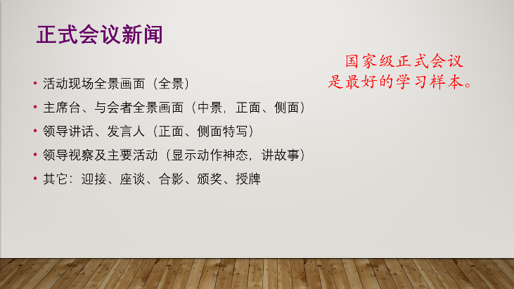 不同的新闻题材关注点不同,摄像方式也要随着调整。以下是高院长为我们总结的十二句四字口诀。