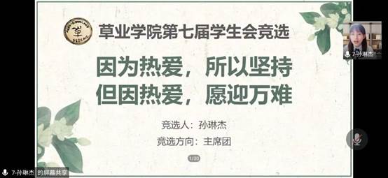 最后,评委老师及所有在线观众于线上进行投票,最终结果会在学院官网与草业Family公众号公示。至此,第七届团委学生会换届大会暨第六届团委学生会述职大会圆满结束。