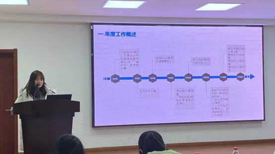 大会第二项议程为各学生组织工作总结汇报。学院学生会与研会各部门分别介绍了部门职能,汇报了本年度工作完成情况,总结了工作中存在的不足之处,提出了来年的工作计划。