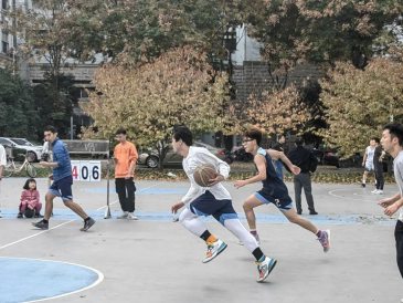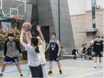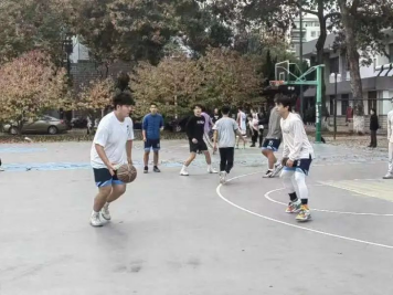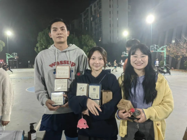 于体育馆北侧篮球场举办“草业杯”篮球趣味赛。比赛开始前夕,体育部部员已经安排好场地,奖品摆放整齐,万事俱备,现场活动氛围十分火热。