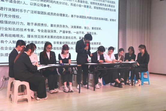 在讨论过程中,各位候选人们各抒己见,踊跃发言,特邀嘉宾韩辉老师亲自上台进行细致观察,场面气氛热烈融洽。在20分钟的自由讨论后,小组内部形成统一意见,并选出一名候选人作为代表进行一分钟的总结陈词。