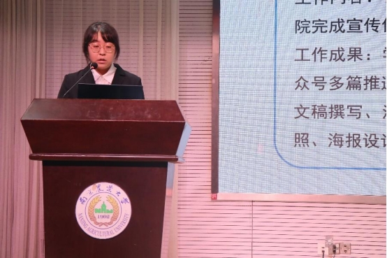 第十届团委副书记李佳蕾与学生会执行主席龚蔬雨分别进行述职汇报,总结了过去一年的工作情况与获得的荣誉,围绕着“小草大爱”这一主题进行了对未来的充分展望,表达了对新一届团委、学生会的祝愿与期望,希望他们能够担当好上下沟通的桥梁,也希望博彩论坛