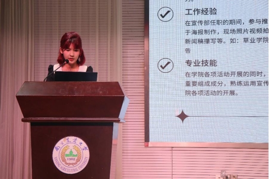 第十一届团委、学生会换届竞选演讲环节,十一位候选人有4分钟时间进行演讲,分别从工作成果、意向职位、个人优势、未来规划等方面进行陈述。