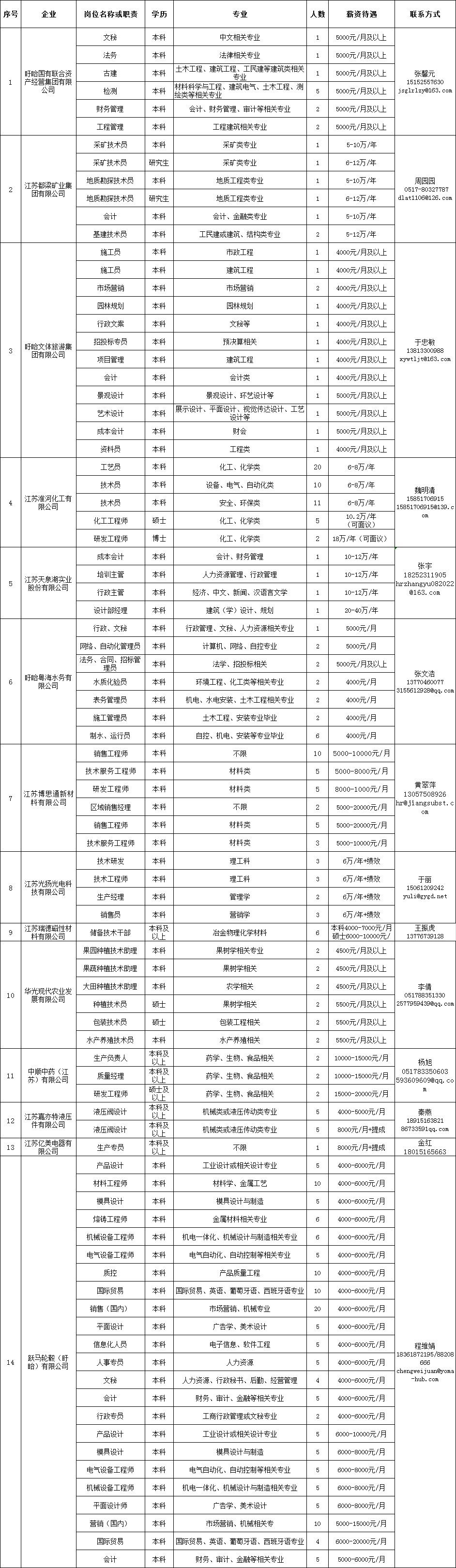 ●A、B类招聘对象执行我市“名校优生”相关政策,博士研究生、硕士研究生、本科生分别发放4万元、2万元、1万元一次性就业补贴。对于江苏籍(参加高考时户籍地或生源地为江苏)的应届毕业生,分别增加2万元。