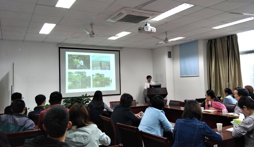 刘国道做报告的题目为我国热带牧草种质资源收集评价及创新利用,他分别从热带牧草种质资源收集概况、资源鉴定评价、热带牧草种质资源创新利用、热带牧草推广利用情况四个方面介绍了课题组在过去二十年间在国内外开展的科研工作。刘国道研究员还与在场的师生们就种质资源的收集问题进行了交流。