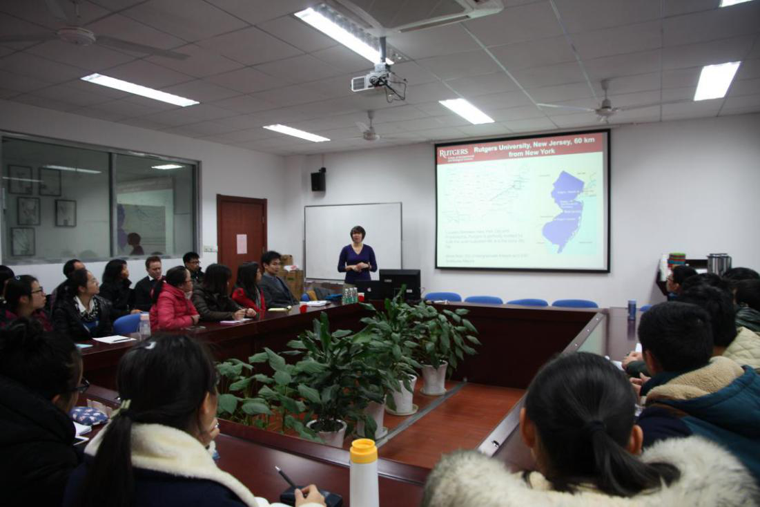 副院长徐彬主持本次讲座,本科一、二年级学生积极参加。Francis女士就罗格斯大学的概况、留学生的生活和学习计划安排、以及具体的申请条件和申请过程等方面向同学们做了介绍。会后有留学意向的同学们积极提问,Francis女士逐一耐心回答,会议气氛活跃。