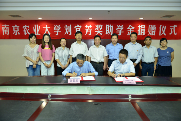 捐赠仪式上,张红生代表南京农业大学教育发展基金会与许若军共同签署了捐赠协议书,盛邦跃向许若军颁发了捐赠证书。