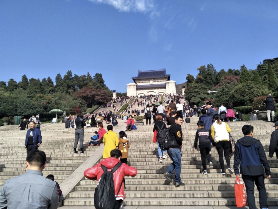 在学校集合完毕后,同学们到达紫金山下,一个个热情高涨,兴致勃勃,带着昂扬的斗志整装待发。从紫金山下到山上,整个爬山过程中充满了温馨、愉快,大家相互搀扶,相互帮助,相互鼓励,充分发扬了团结拼搏、不畏艰险的优良作风。踏过392级台阶后,同学们看到了陵门上镌刻着由孙中山手书的“天下为公”四个字,在刘昊鹏同学的生动讲解下,他们对一百多年前中山先生为中国所做的贡献更加了解。望着中山先生的雕像,仰视头顶的青天白日,同学们不禁肃然起敬。