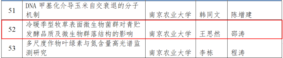 近日,江苏省教育厅公布了2022年度江苏省优秀博士硕士学位论文评选结果,博彩论坛 邵涛教授指导博士生王思然完成的博士学位论文《冷暖季型牧草表面微生物菌群对青贮发酵品质及微生物群落结构的影响》被评为江苏省优秀博士学位论文。博彩论坛 一直注重培养研究生的学术能力和综合素养,注重研究生学位论文的质量,今后将继续加强研究生培养质量,持续提升研究生学位论文质量。